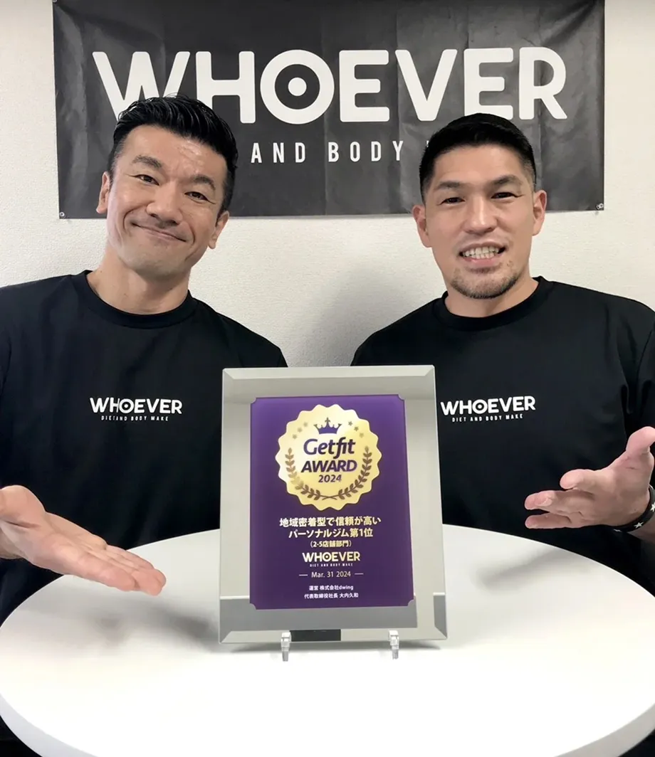 地域密着型で信頼が高いパーソナルジム(2〜5店舗部門)として、WHOEVERが「Getfit AWARD 2024」を受賞いたしました。